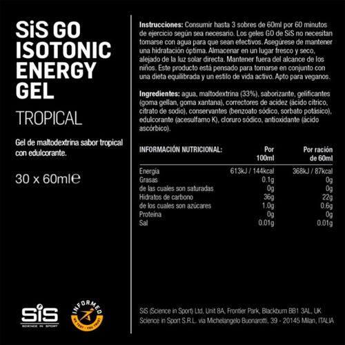 Caja SIS Gel Go Isotónico Tropical 60ml 30U