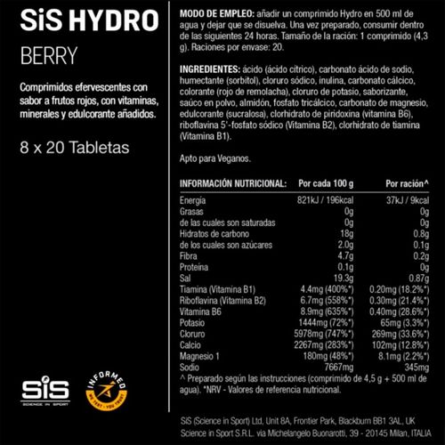 Caja SIS Tabletas Electrolitos Hydro Berry 20T 8U
