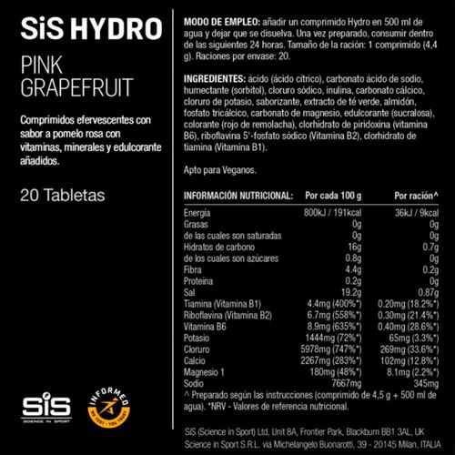 Caja SIS Tabletas Electrolitos Hydro Pomelo 20T 8U
